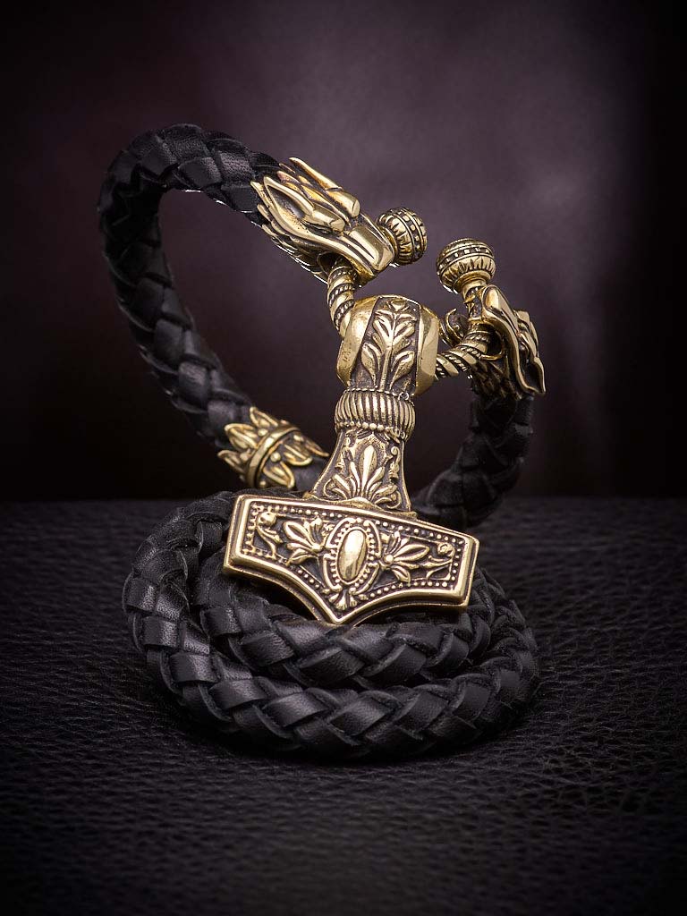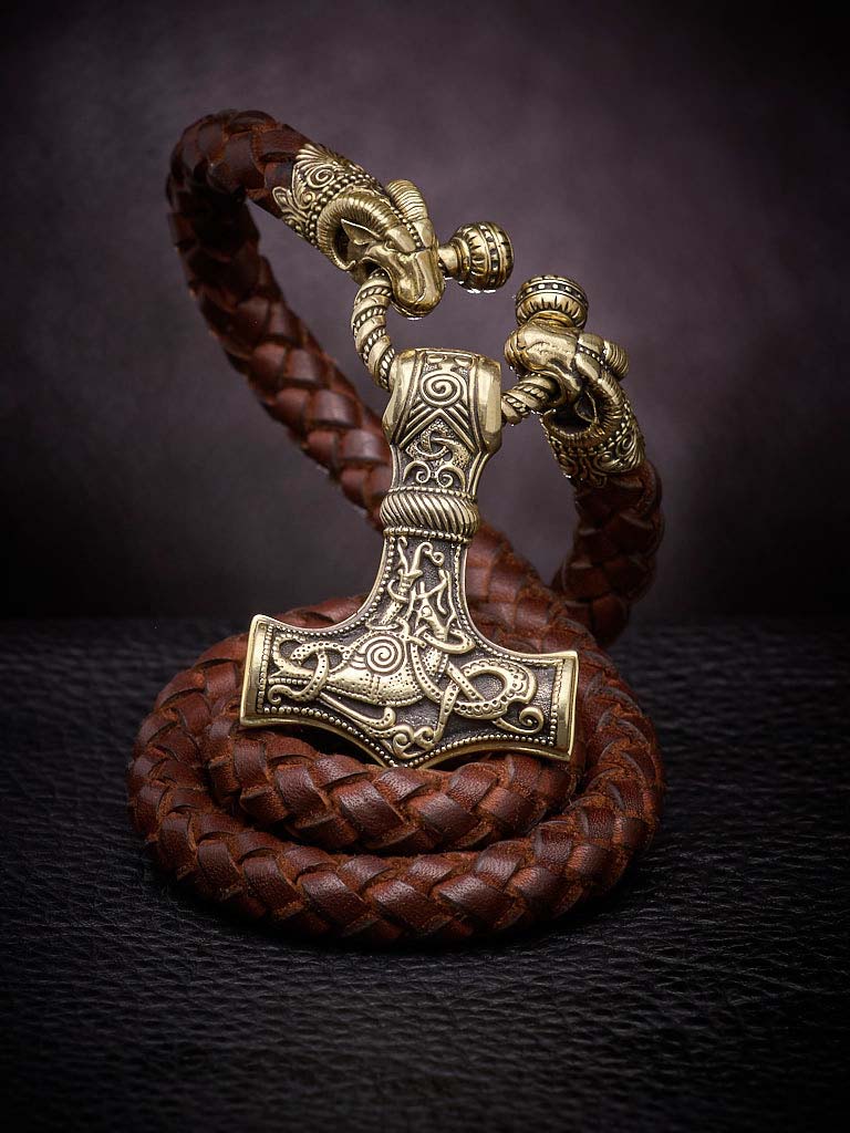 Thor’s Hammer MJOLNIR with Valknut Luxury Leather Necklace -